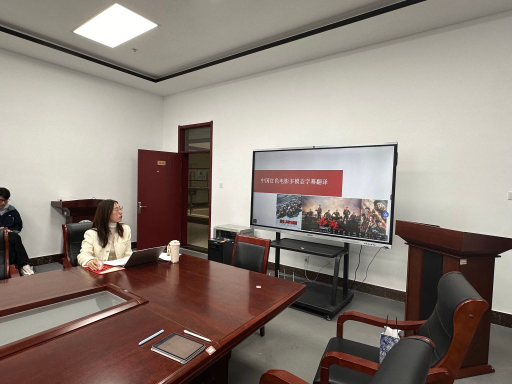 结合理论,刘博士重点剖析了中国红色电影的多模态字幕翻译。她强调,翻译红色影视作品不能仅仅停留在文字层面,必须综合考虑画面、音乐、对白语气等所有模态元素,才能精准传递其中所蕴含的革命精神与情感力量。通过展示具体的电影译文对比,她详细讲解了如何在不同模态的约束与协同下,实现文化内涵的等效传播,让红色故事在国际语境中也能“听得懂、听得进、听得信”。