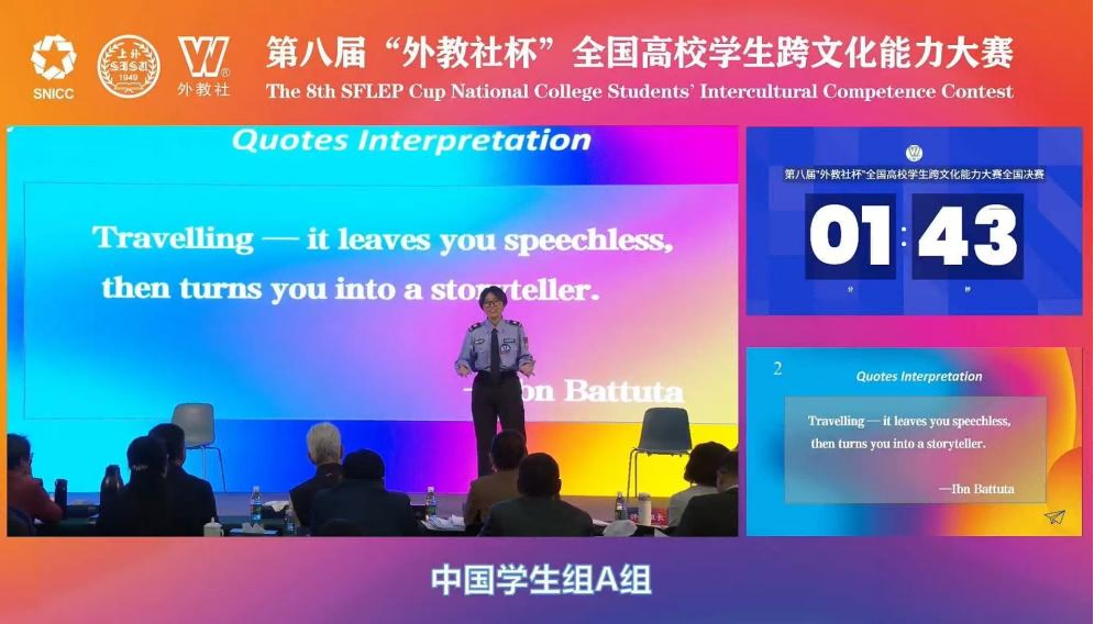 在全国总决赛的激烈竞争中,面对来自全国各地的高水平对手,我校团队沉着自信,以流利的英语表达、深刻的跨文化案例分析、灵活的现场应答以及富有感染力的团队展示,赢得了评委的高度认可。他们的表现不仅体现了对中西方文化差异的深刻理解,更展现了在全球化背景下进行有效沟通与协作的卓越能力。